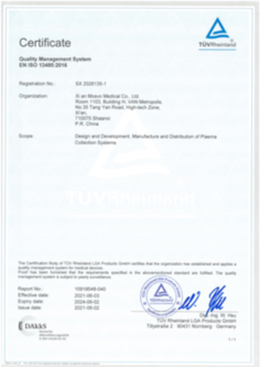 公司主營産品爲離心式血液成分分離設備及其核心配件。憑借安全可靠、采集高效、易于操作的優勢,獲得衆多客戶的信賴,遠銷歐盟、烏克蘭等地,并與國内外客戶保持良好的合作關系。公司凝聚了一支專業、經驗豐富的研發隊伍,研發人員占比超過公司總人數的50%,建立了一套科學、完善的研發體系,堅持不斷創新,掌握核心技術,爲客戶提供優質的産品和服務。公司已擁有的核心技術獲取多項國家專利和軟件著作權,公司建立了完善的質量管理體系,并通過ISO13485質量管理體系認證,産品通過了歐盟CE認證、烏克蘭UkrSEPRO認證及中華人民共和國醫療器械注冊證。